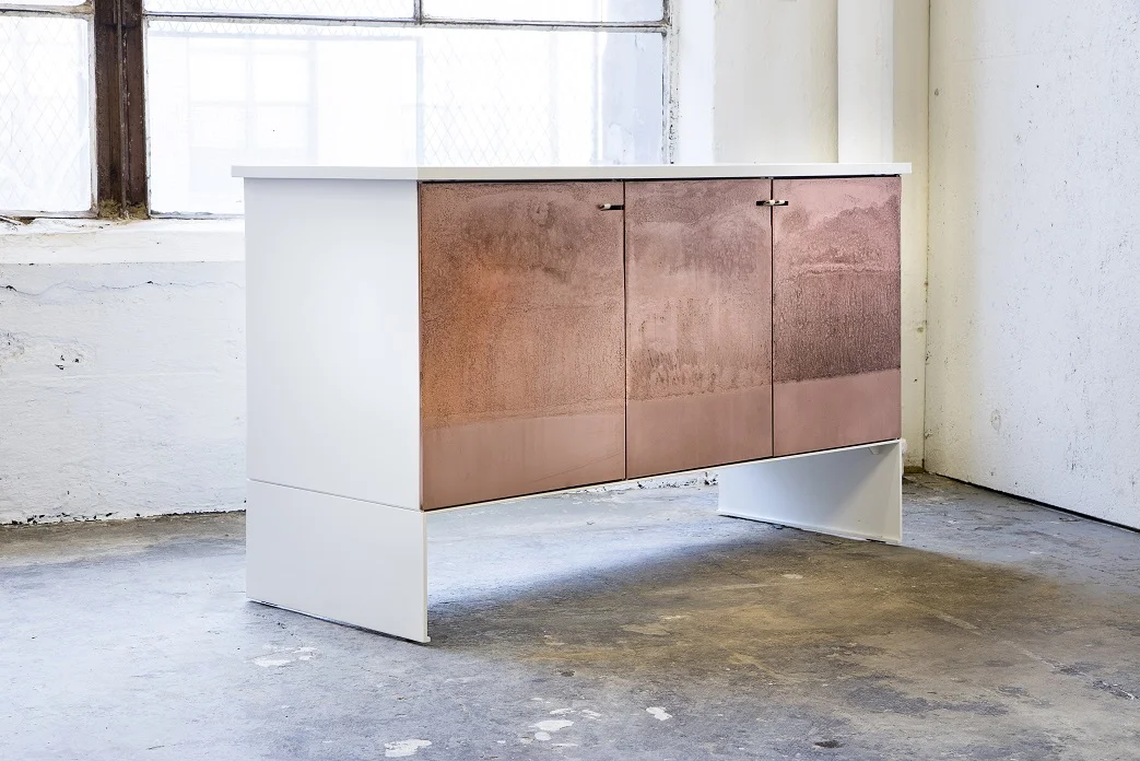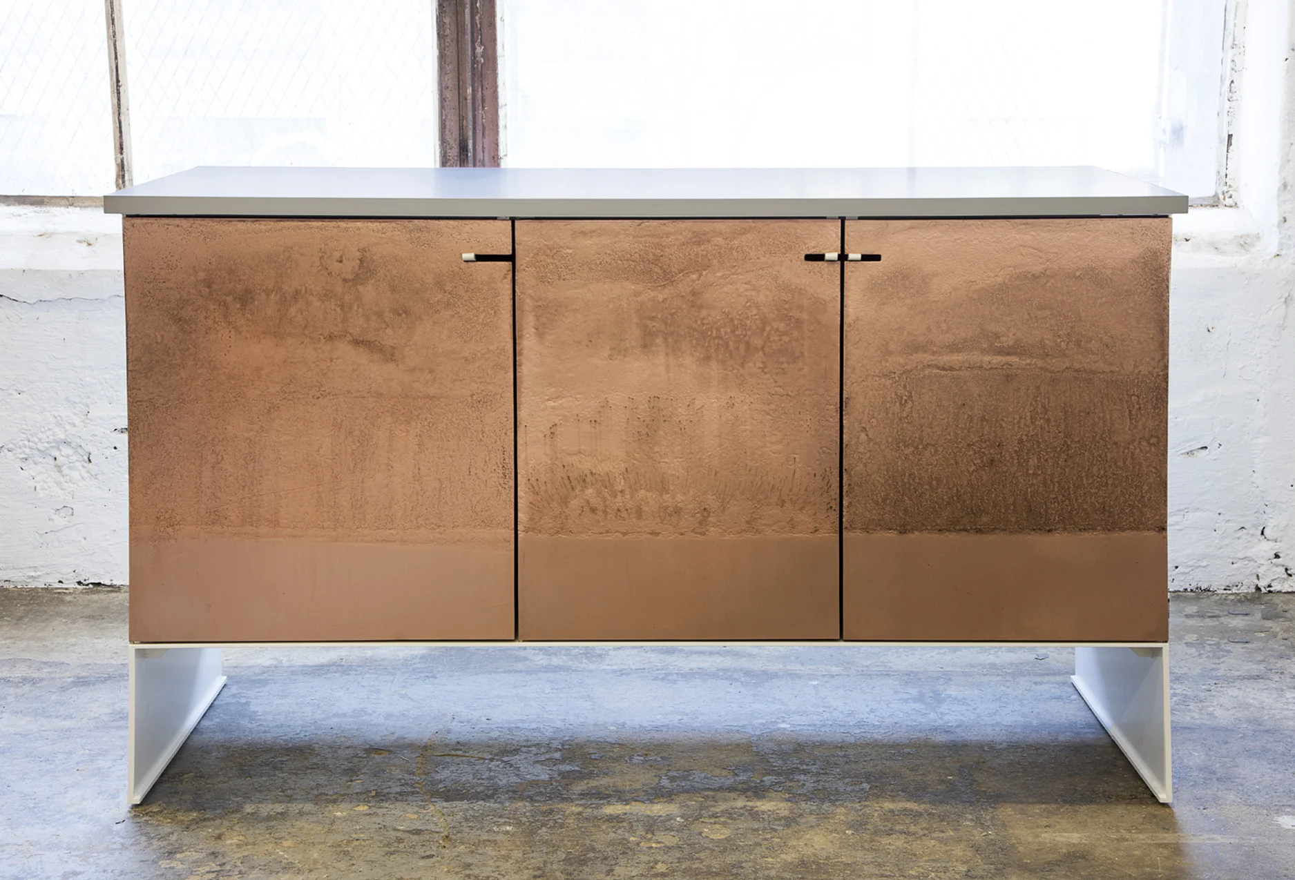 The Etch Credenza features an rich copper texture on the doors. The organic texture sets off the clean lines of the frame.
